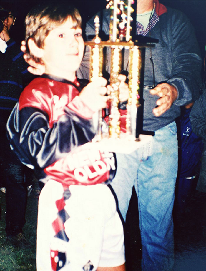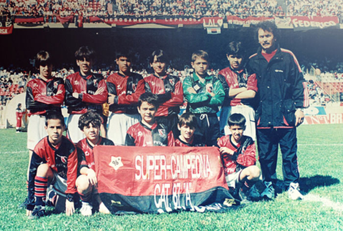 很长时间以来,这个小男孩都是罗萨里奥市的话题。这座城市里的一家报纸媒体还写了一篇关于他的整整一页的介绍。在9岁的时候,他就已经会在自己母队纽维尔老伙计队的职业比赛开始之前被带到场地的中间,颠15分钟的球,而周围开心的观众们就会给他扔几个硬币。