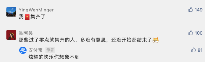 “支付宝”官方微信公众号下留言显示,今日零点刚过,就已有不少网友集齐了五福。