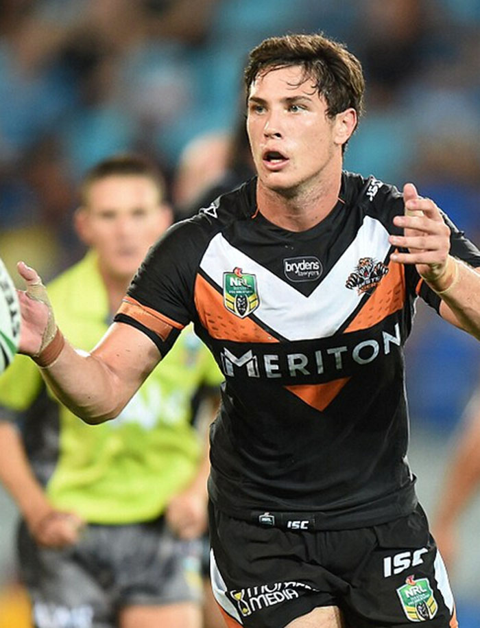 来自于澳大利亚国家橄榄球联赛(NRL)球队西澳老虎队的运动员米切尔·莫斯的装束则随意一些。他穿着一条牛仔裤,一件印有斑点的黑色T恤,还有一件咖啡色的山羊皮短夹克。整套搭配正是时下流行的秋季装束。