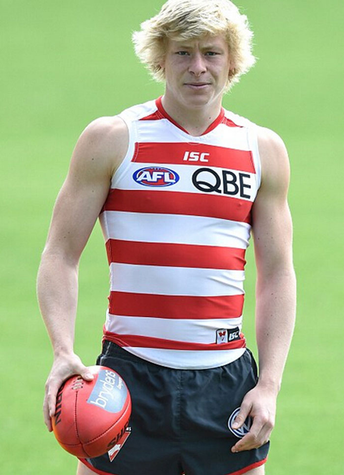 目前效力于澳式足球联盟(AFL)悉尼天鹅队的球员伊萨克·海内同样穿了一件随性的牛仔裤,除此之外,她还在里面穿了一件黑色的高领毛衣,外面则套了一件卡其色的短夹克。在他个人单独拍摄的照片中,这位冉冉升起的新星选择了一套更加成熟正式的装扮,他在里面穿上了一件黑白条纹的衬衫,外面穿上了黑色的西服套装,脚上则穿了一双黑色皮鞋,还搭配了一顶棕色的圆帽。