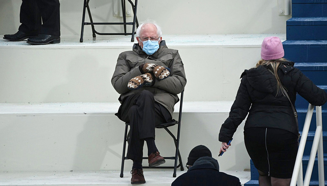 美国联邦参议员伯尼·桑德斯不久前因在拜登的总统就职典礼上的一张照片而意外走红。不同于典礼现场其他嘉宾的盛装出席,79岁的桑德斯老爷子一身便装配上针织花纹的棉手套,翘着二郎腿,本本分分地坐在看台上,朴素得就像“出门打个酱油顺便参加下乔的就职典礼”。
