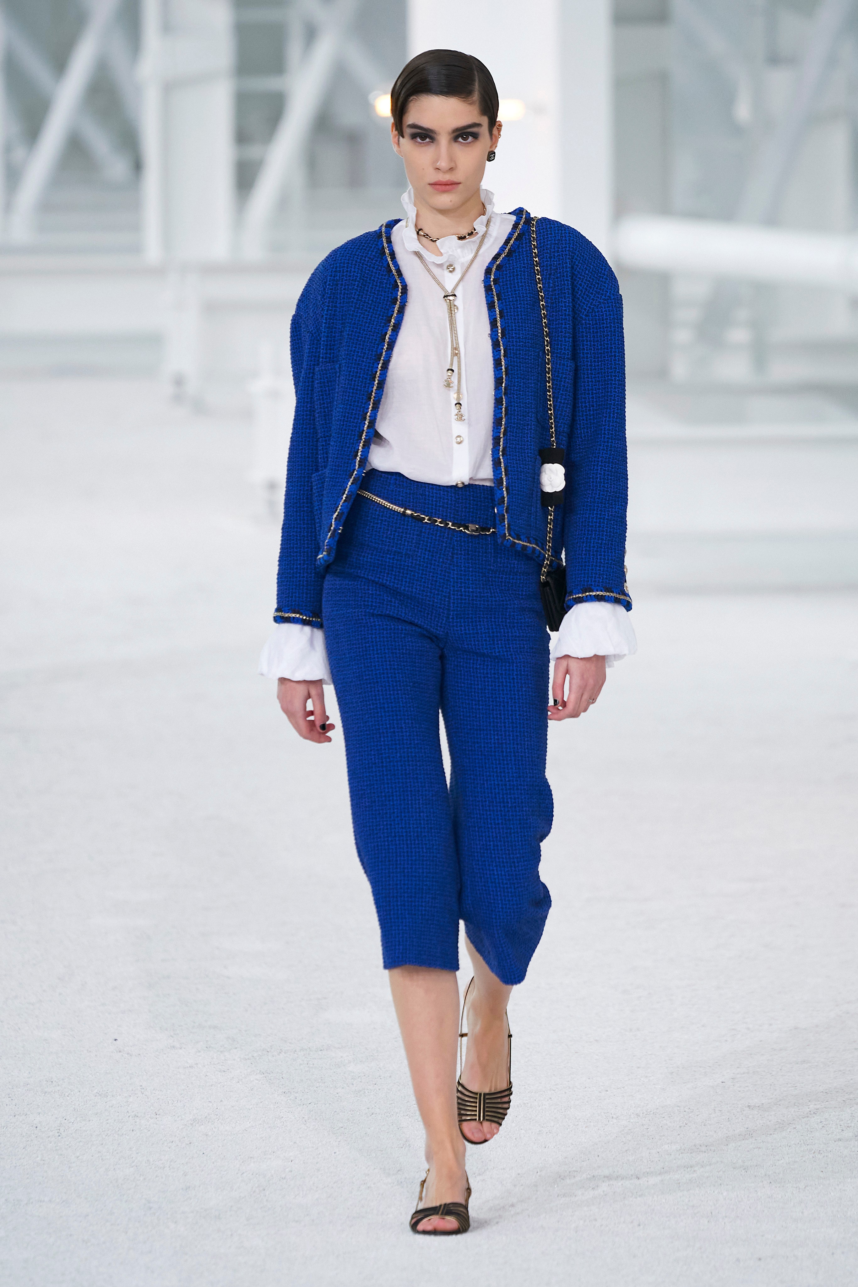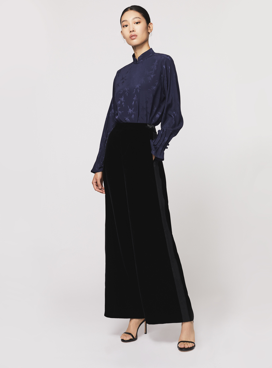 但这也不是说你一定要穿得庄严肃穆,才能从人群中脱颖而出。事实上,许多冷色调色彩在这里亦能与过年时节的活泼气氛呼应。只要纯度够高、面积够大,原本略带距离感的冷色也可以变成缤纷的亮色。