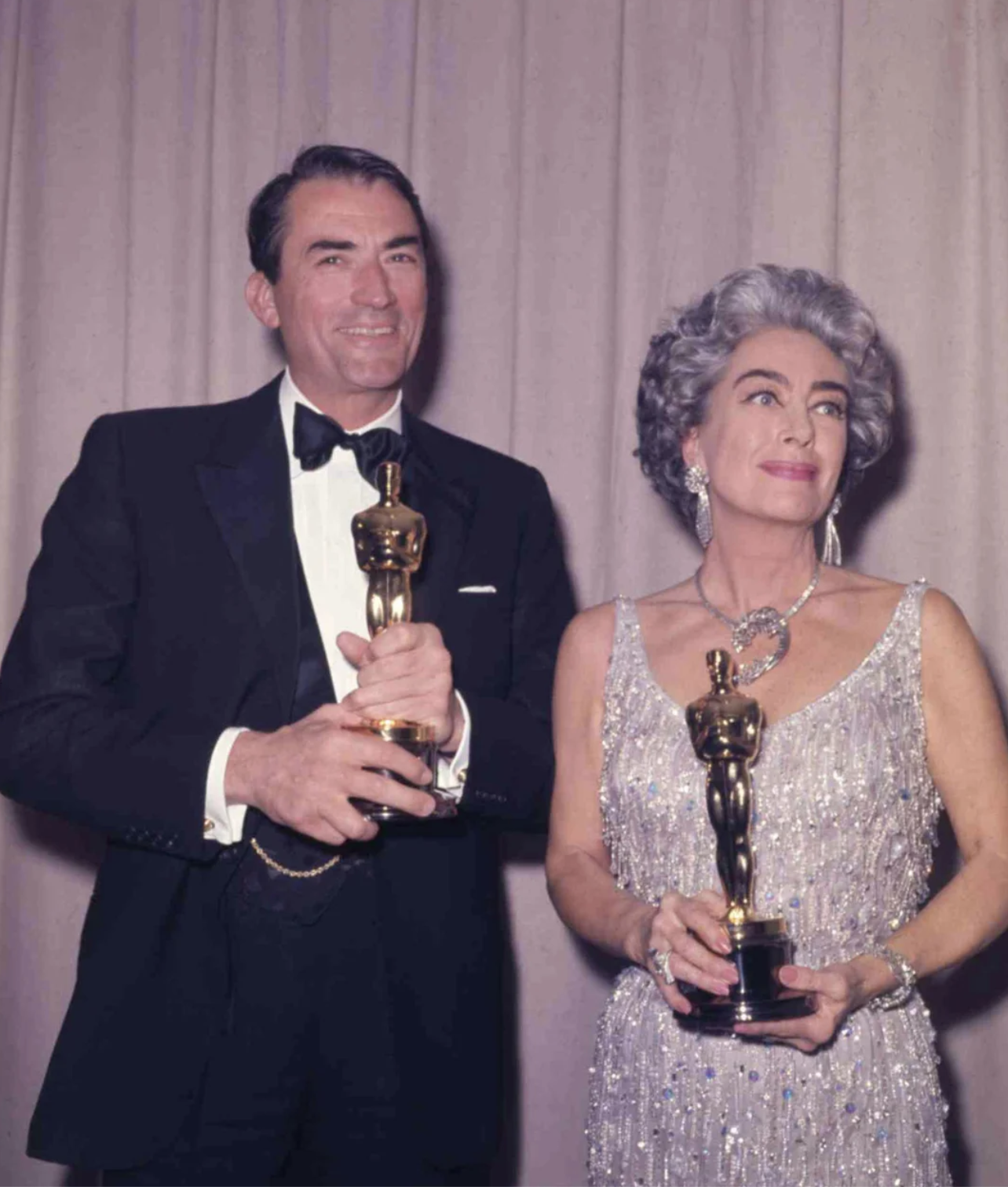 当然,保守一点的选择也是有的,模仿奥斯卡大明星们绝对不会出错。琼.克劳馥(Joan Crawford)在1963年奥斯卡颁奖典礼上的造型是个不错的参考对象,银色的短卷发搭配银色的流苏亮片裙,整个人都熠熠生辉。而且买一条修身短裙可比买一条拖地长裙容易多了。