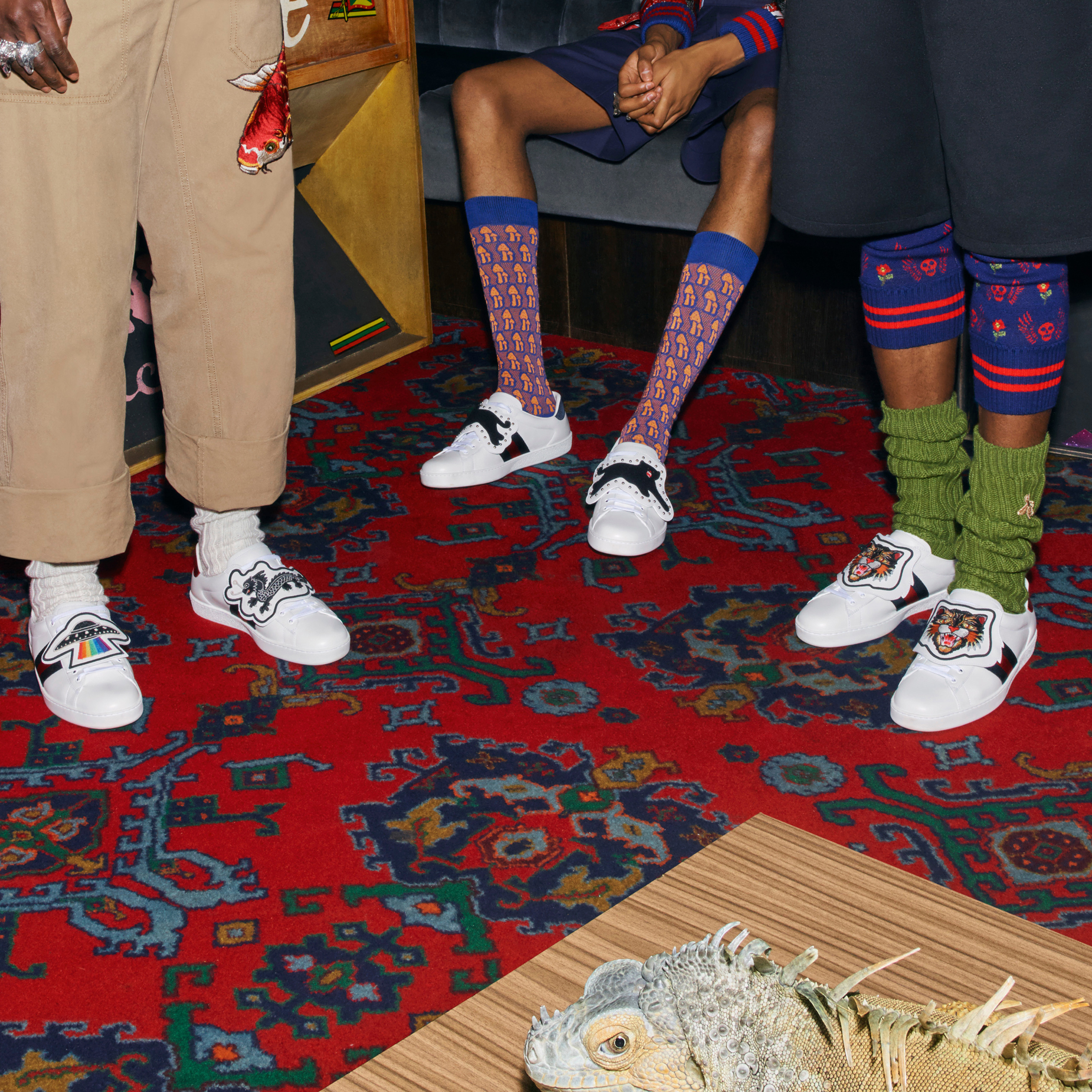 不用面对挑剔的七大姑八大姨,再夸张的混搭在今年的年三十也能变成理所当然。比如说,将上海滩的旗袍式短裙与古驰的文艺复兴印花外套混搭,再搭配CLOT x Air Force 1的丝绸系列球鞋。有点不伦不类?但以解构一切的街潮态度来看,这或许是新中式风格的体现。