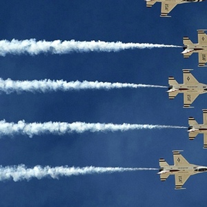 16. 2011年的一次航展上,蓝天使飞行队指挥官戴维·科斯在起飞前下令队员制造烟雾造势。
