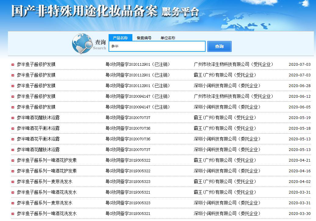值得一提的是,青眼在国家药监局非特殊用途化妆品备案服务平台查询了解到,参半旗下还有多款洗护产品,包含洗发水、发膜、护发素、沐浴露等品类(部分产品已经注销)。