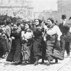1908年3月8日,美国纽约,上万名妇女走上街头,争取投票权,抗议血汗工厂和童工问题,呼吁提高劳工福利。