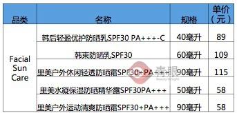 防晒品类