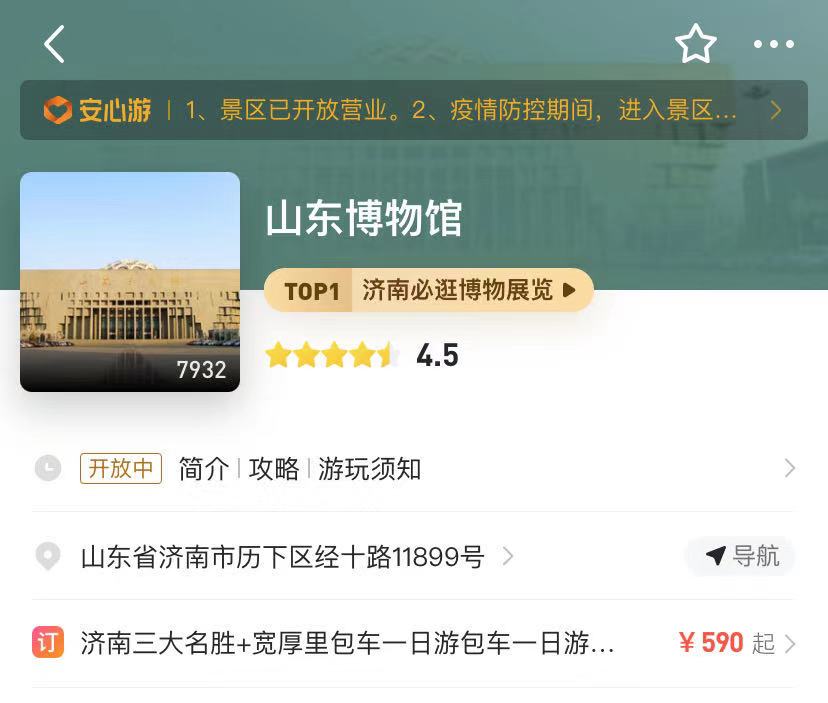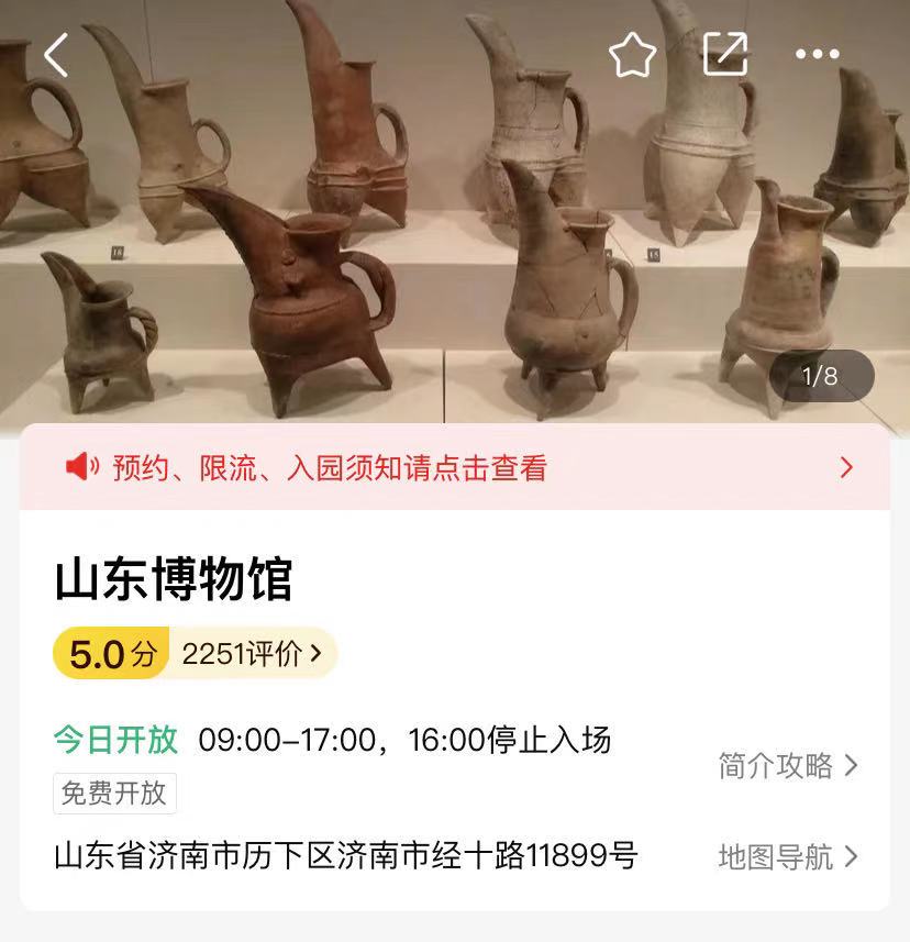 因此,我们看到的山东博物馆稳重却不失活泼,大气也不乏亮点。这使得山东博物馆在流量面前仍不失分量:在多个app上,山东博物馆的成绩一直可圈可点,大众点评评分5.0分,入选“2020博物馆必玩景点”并上榜“2020必玩榜”;马蜂窝综合评分4.5分,被评为山东必逛博物展览top1;小红书4800+打卡笔记。这些数据恰恰充分说明了山东博物馆在网红时代下不失本色的成功。