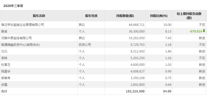 2019年10月,新宁物流实际控制人王雅军、股东南通锦融投资中心(有限合伙)、曾卓签署股份转让协议,向宿迁京东振越企业管理有限公司合计转让10%的股权;至此,京东成为新宁物流第二大股东。2020年,新宁物流原第一大股东苏州锦融投资有限公司、以及第一大自然人股东曾卓持续减持股份,最终京东于2020年9月成为新宁物流第一大股东。