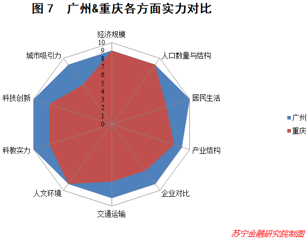 结论:人口规模与结构上,重庆胜在总量,广州胜在结构,二者均得9分。