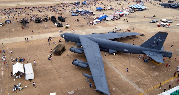 重达185000磅(约84吨)的B-52轰炸机是美国空军服役时间最长的现役战机之一,此型飞机于20世纪50年代的冷战高峰期开始进入美军服役。最初的B-52被设计为能够纵深突袭前苏联国土的远程高空洲际核打击轰炸机。