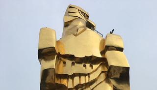 高约32米的南山大金鹰,于1998年3月28日正式竣工开放。由于常年立于山巅日晒雨淋,大金鹰外部的金箔受到严重侵蚀,脱落严重。2019年11月,南山植物园金鹰园实施品质提升工程,对大金鹰进行封闭式升级改造。其中最重要的项目就是为大金鹰帖上金箔,让它重披“金装”。