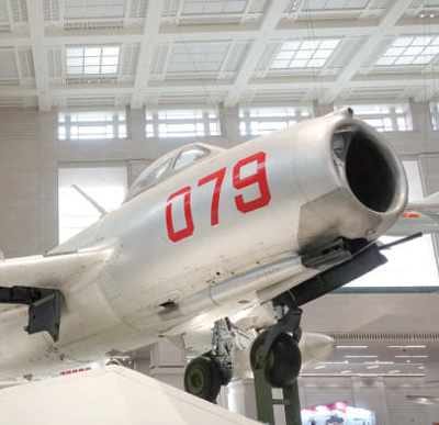 中国人民志愿军空军战斗英雄王海驾驶过的苏联造米格—15战斗机。本报记者 陈尚文摄