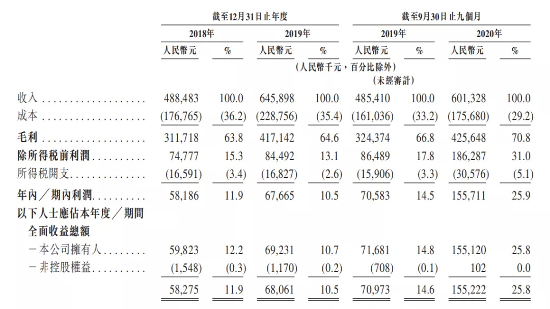 据其招股书显示,2020年前三季度营收达6.013亿元,同比+23.9%。