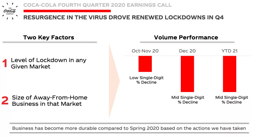 “尽管仍存在与疫情相关的不确定性,但我们对未来的复苏有了更高的能见度,并有信心我们的行动将持续减缓危机的影响。”可口可乐公司今天表示。