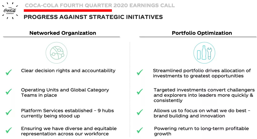 在今天发布的财报中,可口可乐公司还谈到了在重组上的最新进展。