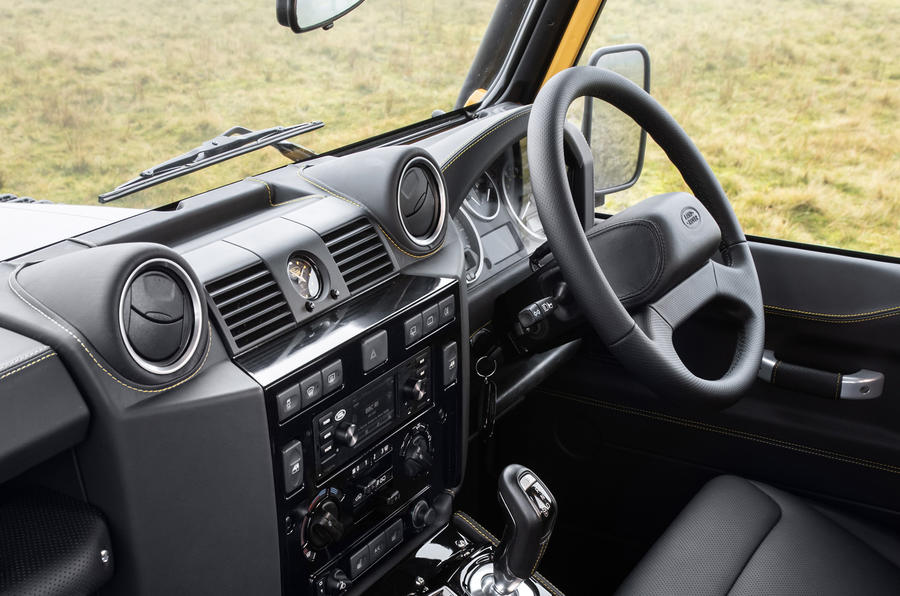 该车采用复古风格的Eastnor黄色,轮拱、引擎盖和尾门均采用黑色,复古风格的前格栅和16英寸彩色钢轮毂则进一步向卫士的起源致敬。