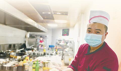 图①:兰州市一家餐饮企业员工在制作半成品年夜菜。