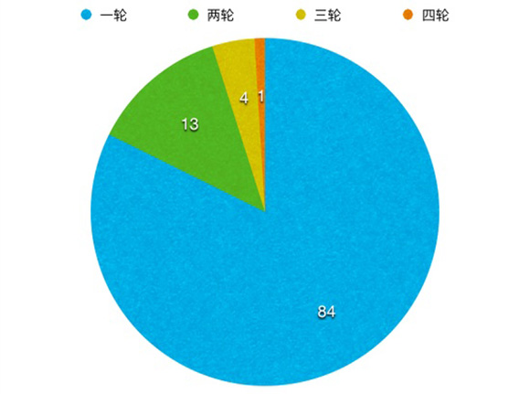 在102个投资项目中,顺为资本对18个项目进行了多轮投资。其中参与两轮投资的有13个项目,参与三轮投资的4个项目,参与四轮投资的仅有1个,84个项目仅参与了一轮投资。