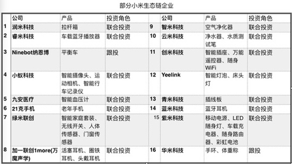 九、几乎投了所有的小米生态链企业