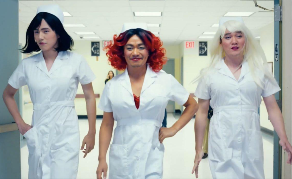 刘昊然的护士秀在网上传播了好一段时间,今年的葫芦娃也挺清秀。毫无疑问,《唐探》对现代流行文化和观众心理取向是把握到位的。包括《唐探3》里的丧尸电影和女护士把惨白的手从尸袋里伸出,都可以视为对日系恐怖元素的拼贴挪用。