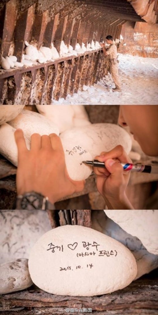 此前《太阳的后裔》官博更新宋仲基照片,图中宋仲基正在远处认真写着什么,拉近一看写的是“仲基(爱心)光洙(亚洲王子)”,对于李光洙的爱暴露无遗!