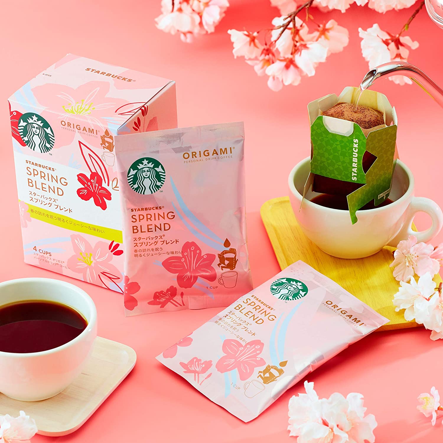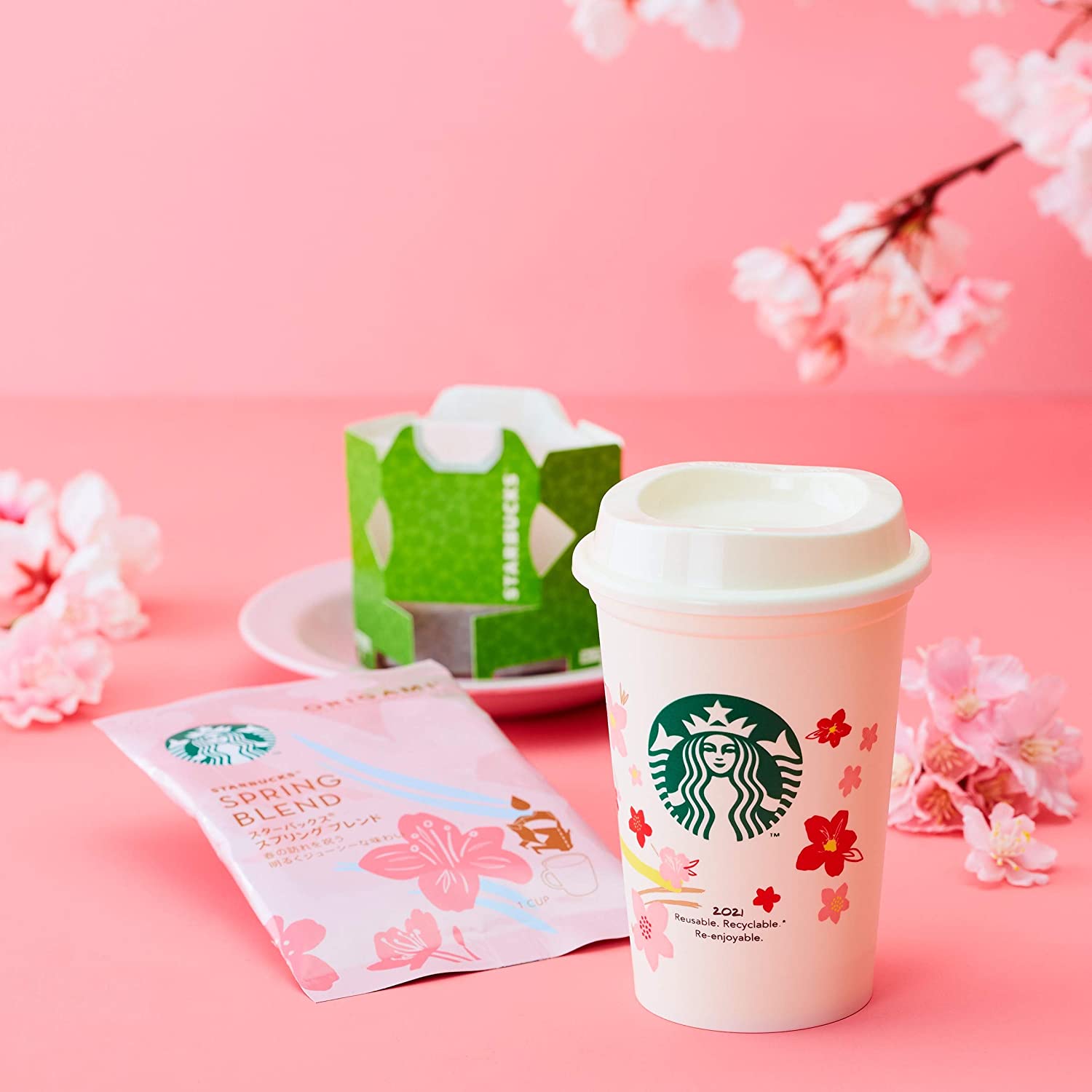 此外,日本星巴克还上新了家用咖啡饮品系列,包括挂耳咖啡、樱花草莓拿铁即溶咖啡随手包、樱花草莓拿铁咖啡胶囊,以及樱花包装的环保杯和野餐垫。趁春日正好,不如和家人一起野餐赏樱。