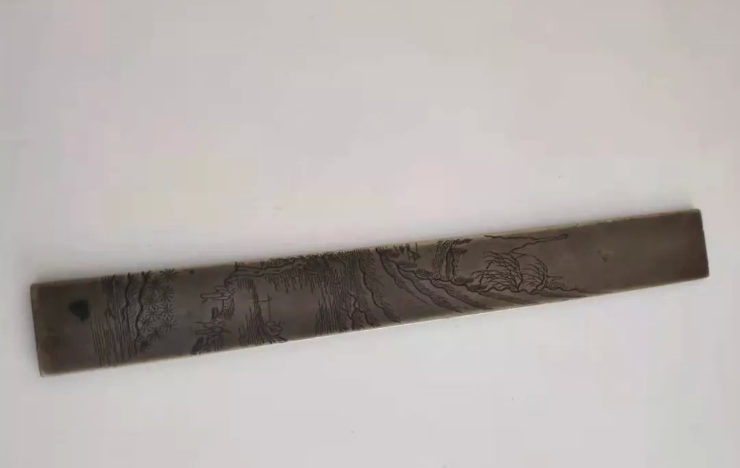 我家有一把约为20公分长的铜制戒尺,正面雕有精细的山水画,背面则非常平整,拿在手上有一种非常扎实的厚重感。