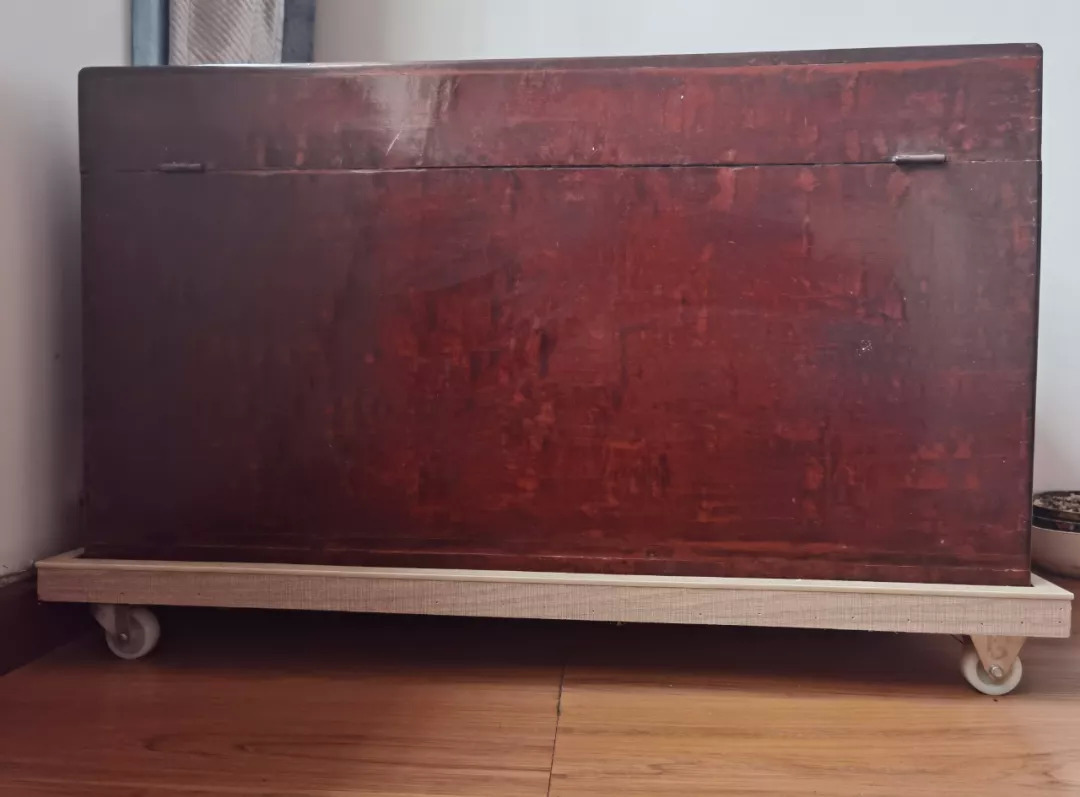 于是两家商量后,爷爷用这个木料做了四口长约1米的箱子。箱子采用了不需要用钉子的卯榫结构打造,还上了一层清漆,保证不被白蚁侵蚀。