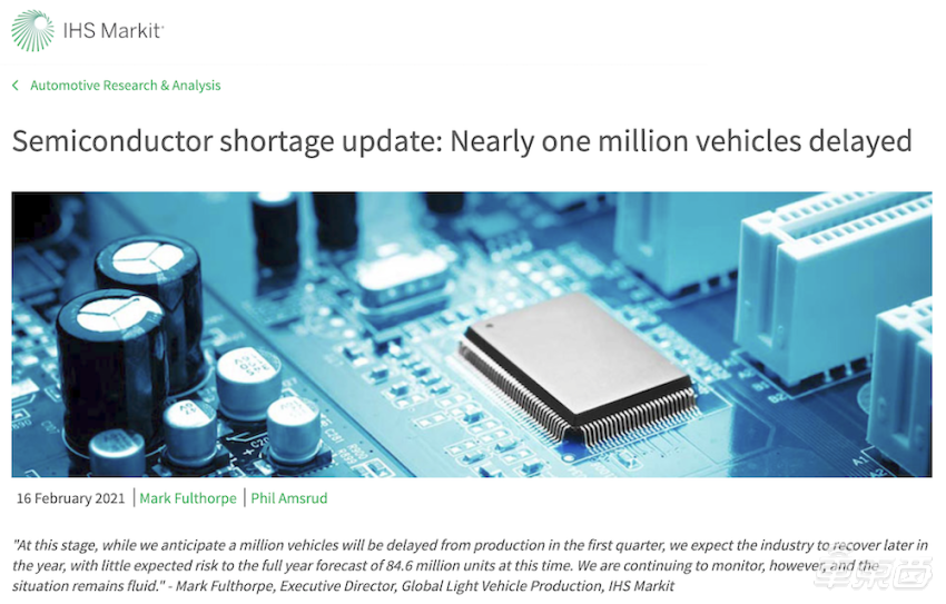 IHS Markit预计,到今年3月,汽车芯片供应将陷入最短缺的时刻,供求差距将最为悬殊。