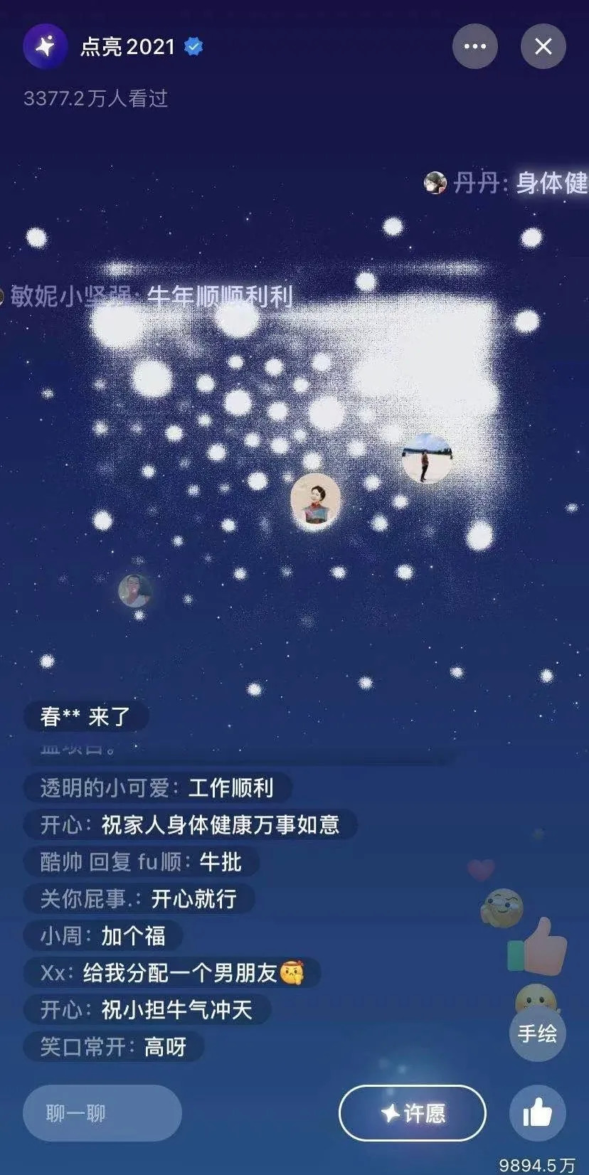 截至发稿前,“点亮2021”仍在直播中,已经累计有1813.1万人许愿,3377.2万人观看过直播。