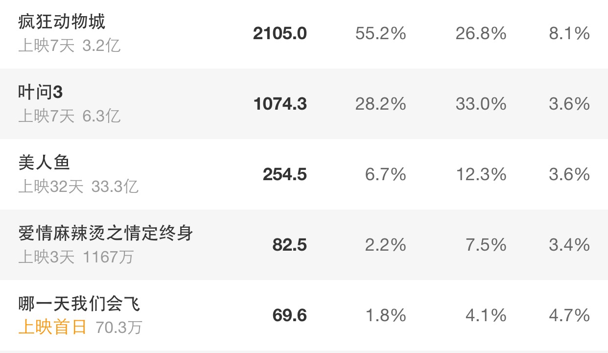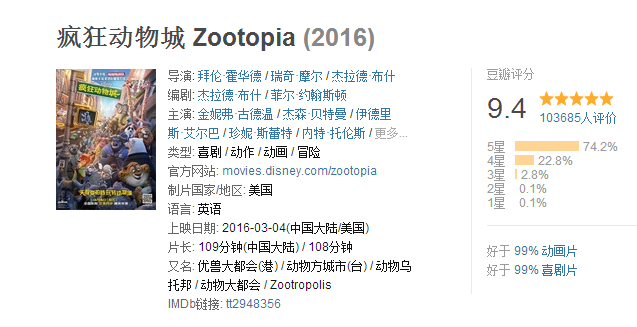 《疯狂动物城》以超强口碑和上座率逆袭《叶问3》