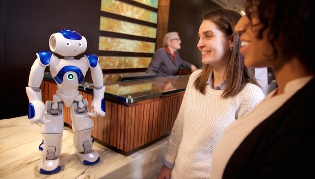 这不是酒店行业第一次用到机器人。2014年,喜达屋(Starwood)的雅乐轩(Aloft)品牌推出了机器人服务员Botlr。去年七月,日本开业了一家几乎全部由机器人运营的酒店。今年春天,欧洲嘉年华公司(Carnival Corporation)的两艘船上将引进仿真机器人佩珀(Pepper)。