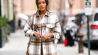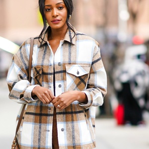 Shacket可以搭配的造型很多,它的廓形通常较大,有时衣摆可以伸长到臀部下方,顺势变成一件大衣,但又没有常见冬季羊绒外套的厚重感,与初春时节不冷不热的气温正好相适。