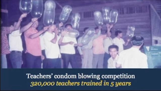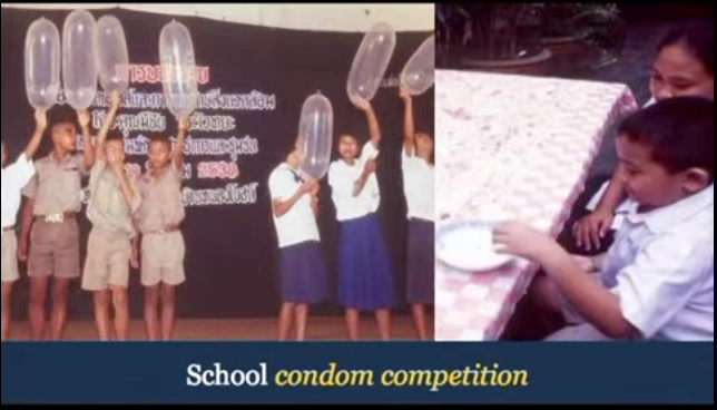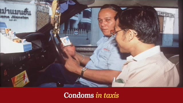 泰国政府迅速意识到,国内97%的艾滋病毒感染都跟性工作者的性传播有关。为此,他们推出了“No glove, no love”(无套套,不做爱)运动,强制要求性工作者使用安全套。