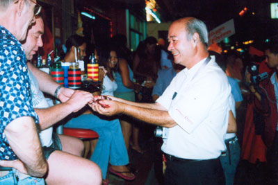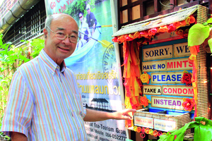虽然已经75岁了,但老爷子还没想过退休的事。偶尔走在路上被曼谷市民认出来,他们还会伸手问米猜要个套套;而他也总能从口袋里掏出套套来。
