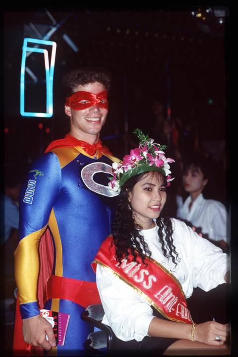 这是当时艾滋病防治运动的代言人“套套队长”(Captain Condom)。据说他是个哈佛大学毕业的MBA,因为颜值高而人气爆棚,为艾滋病活动的宣传吸引了不少眼球。