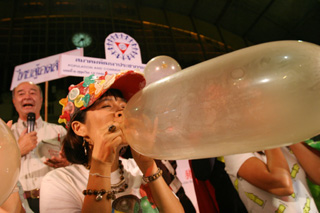 发套套当然不仅在红灯区。米猜又像当年一样走在了大街小巷,不过这次是为艾滋病;