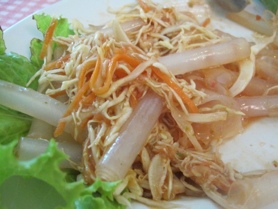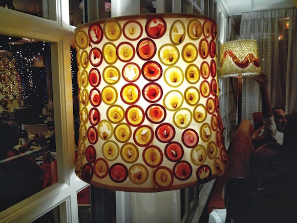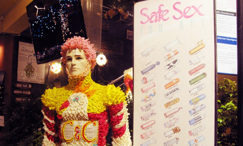 最厉害的是,菜单上都是跟套套有关的菜式,例如这里的招牌前菜“安全套沙拉”,里面真有状如套套的东西在(放心,那是用米做的):