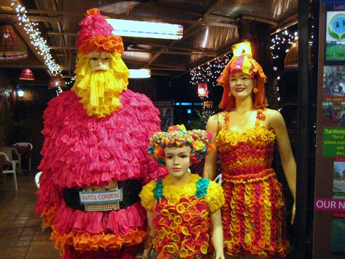 湄公河上吆喝着做小生意的渔船里,同样也在出售套套,明明白白就放在生猛的螃蟹和新鲜的香蕉旁边: