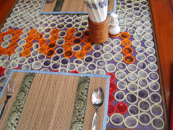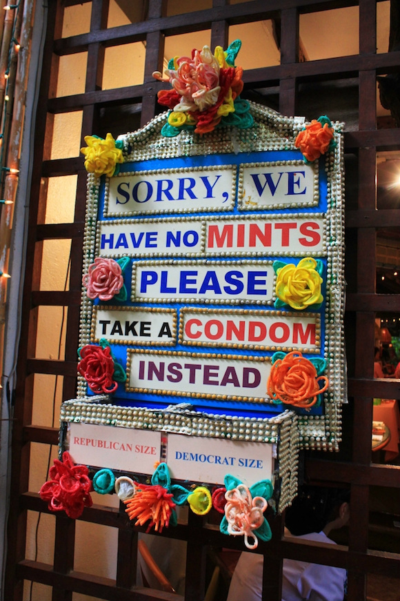 一般餐厅埋单之后可能会给你果盘或者薄荷糖,而在这里,你收到的当然是套套: