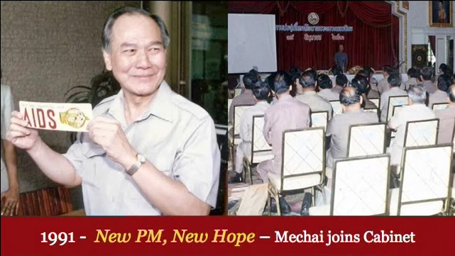 1991年,时任泰国总理的阿南•班雅拉春将用于艾滋病防治运动的预算增加了5倍(到1993年,这个数字甚至增加到20倍),并邀请米猜加入其中。不仅限于军方电台,防治艾滋病的信息很快就播遍了全国488家电台和6个电视台。
