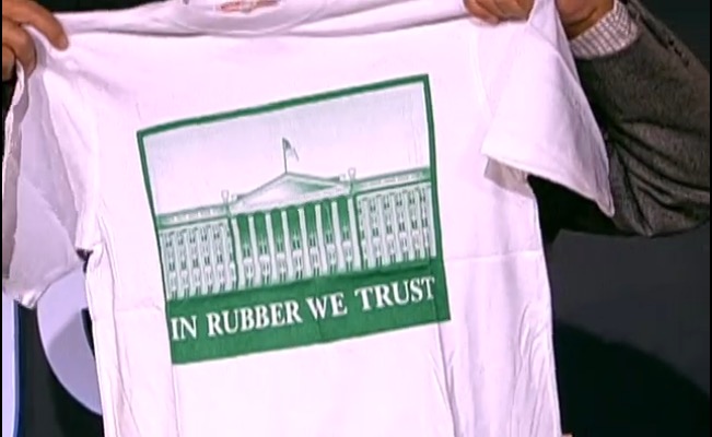 美国人信仰上帝(In god we trust),而我们只信套套(In rubber we trust):