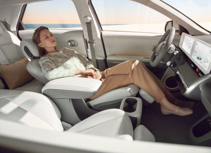 车内部,IONIQ 5试图突出“生活空间”主题。