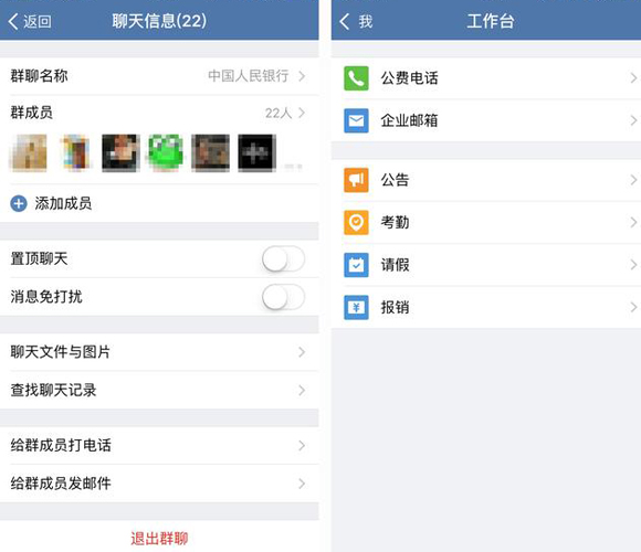 在工作台中,多人可以同时免费使用企业微信的公费电话功能进行工作沟通。此外,员工还可以在手机上完成读取公告、考勤、请假以及报销,绑定腾讯企业邮箱之后,也能实时接受新邮件提醒。