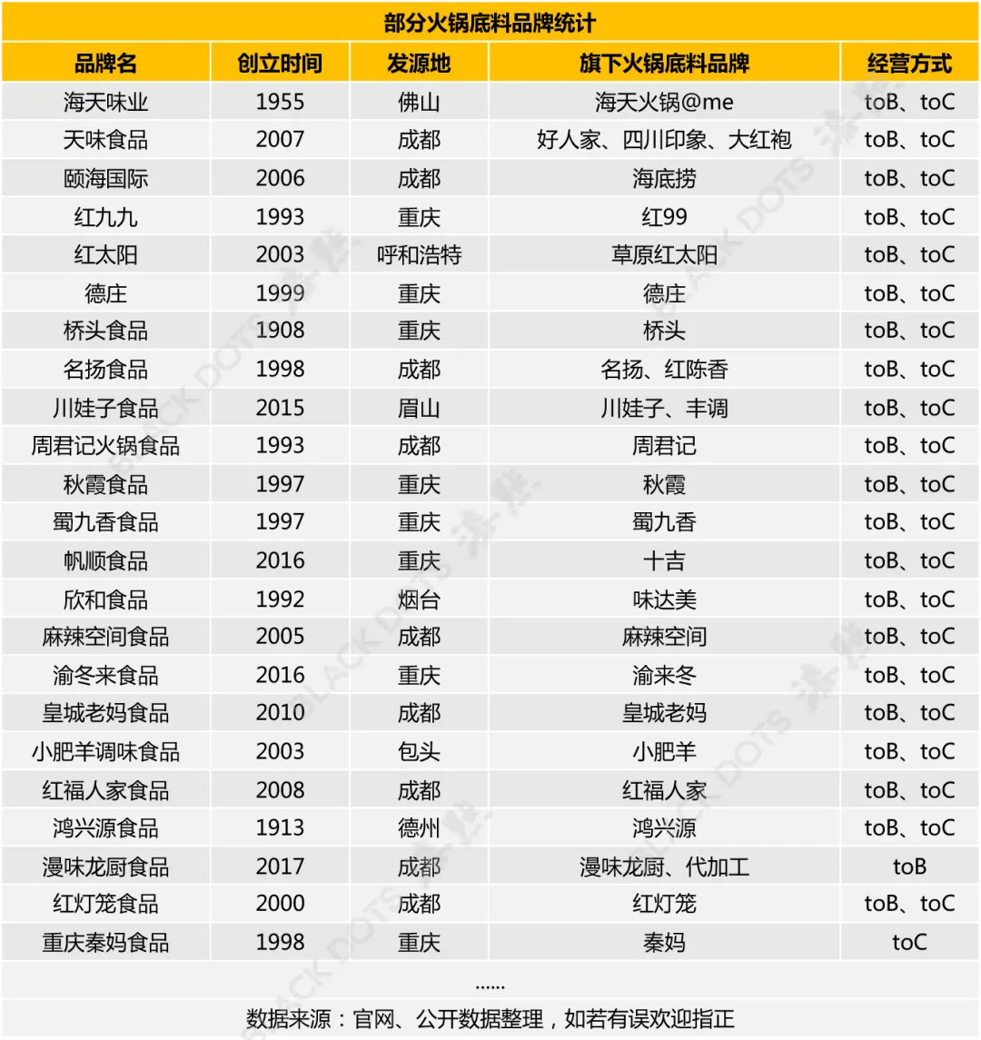 依据公开数据整理,市场上部分火锅底料品牌,数据整理:漆点餐研社