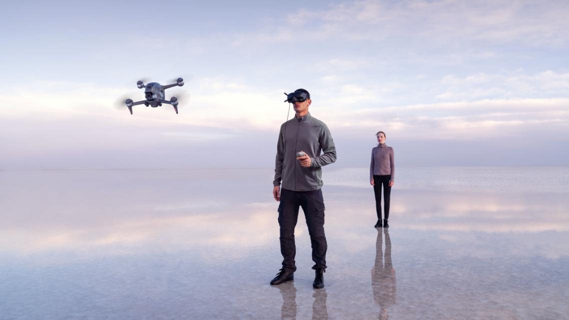 DJI FPV 提供区别于普通航拍无人机的飞行视角和操控方式。用户佩戴飞行眼镜,以第一人称视角进行操控,人与飞行器实现结合。
