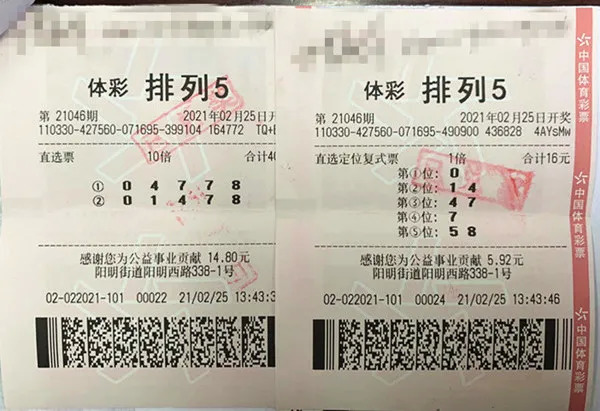 2月25日,体彩“排列5”第21046期开奖。当期开奖号码为“0 4 7 7 8”,全国共中出36注一等奖,其中11注花落位于宁波余姚阳明街道阳明西路338-1号的3302022021体彩实体店。