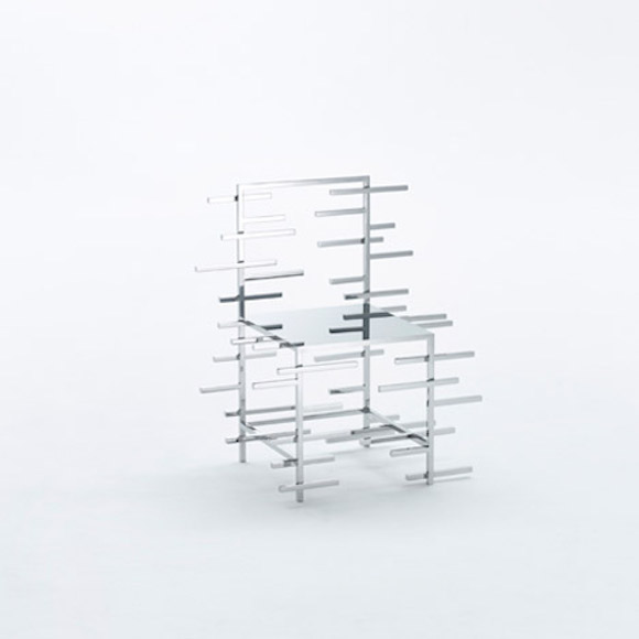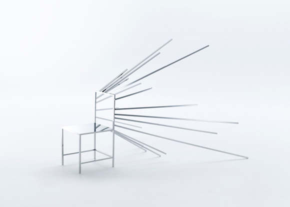 Nendo 设计的这些“漫画椅”都是由抛光的不锈钢条做成,与脑洞打开的“特效”加在一起,实现了一种容易让人眼花的视觉效果。另外,不锈钢条的镜面效果在 Nendo 的设计师们看来还与日本漫画一样有一种反映真实人生的可能。